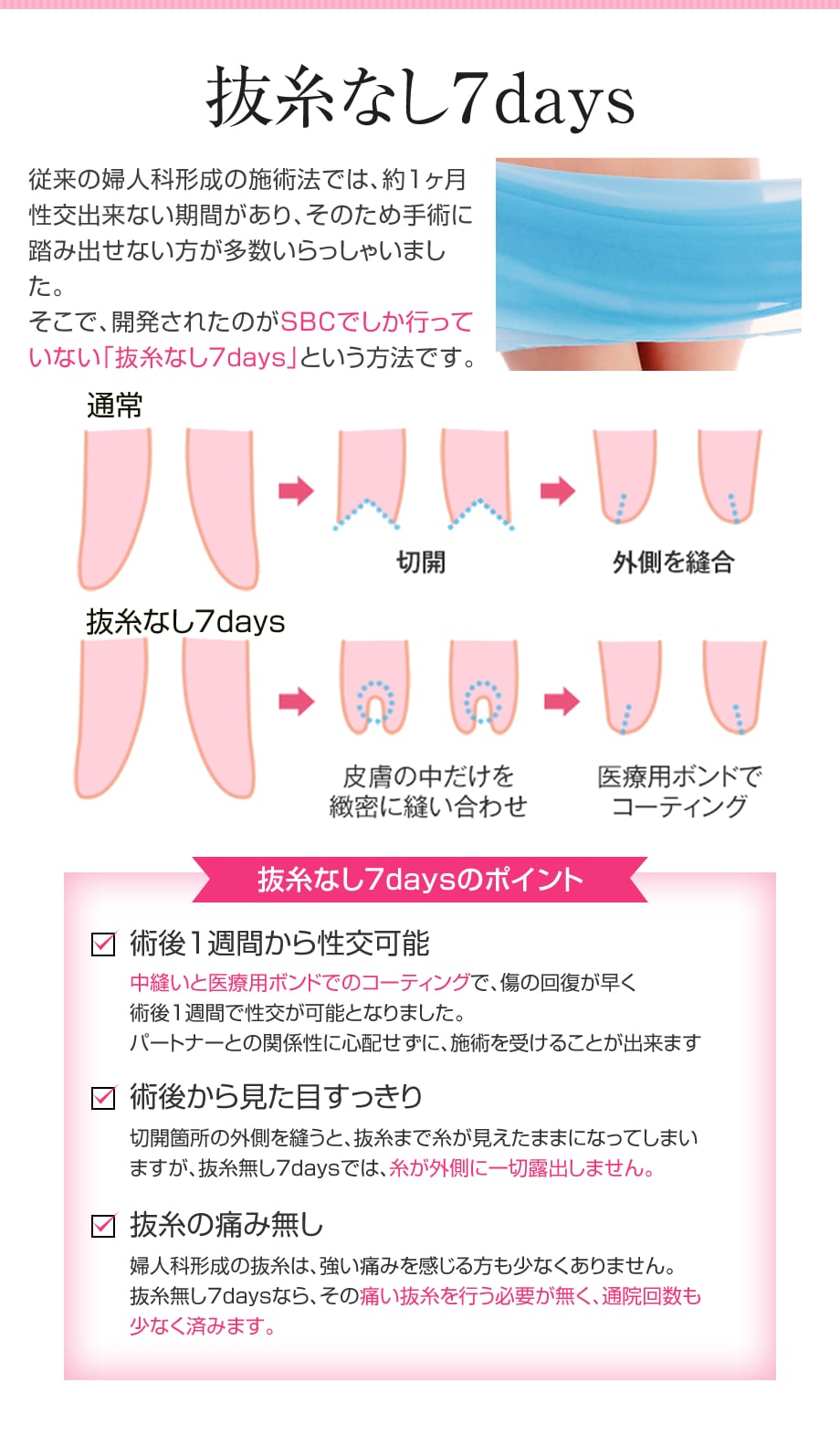 | 抜糸なし7DAYS(小陰唇縮小)(片側) | 115,500円 |