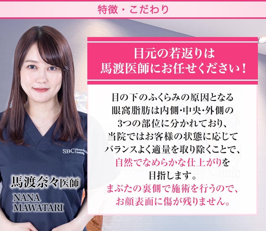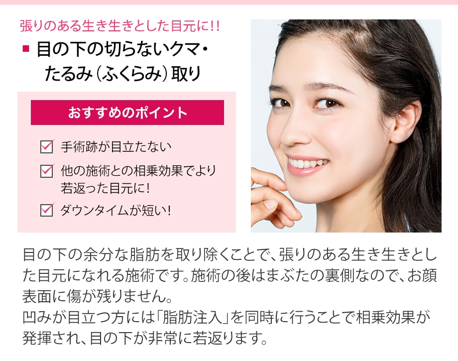 目立たない傷で目元のふくらみ、クマを改善し、若々しさを取り戻しませんか?