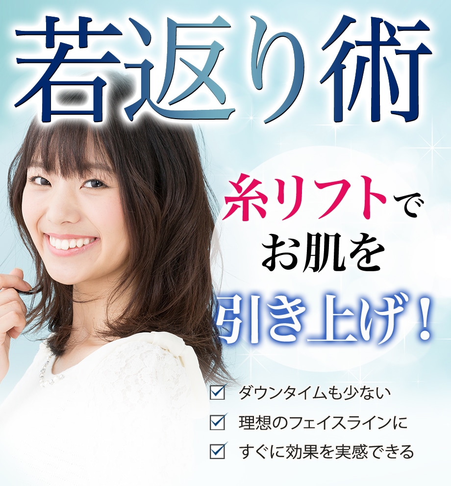 糸リフトはお肌を引き上げることで小顔効果や老け見えのたるみを改善してくれます。