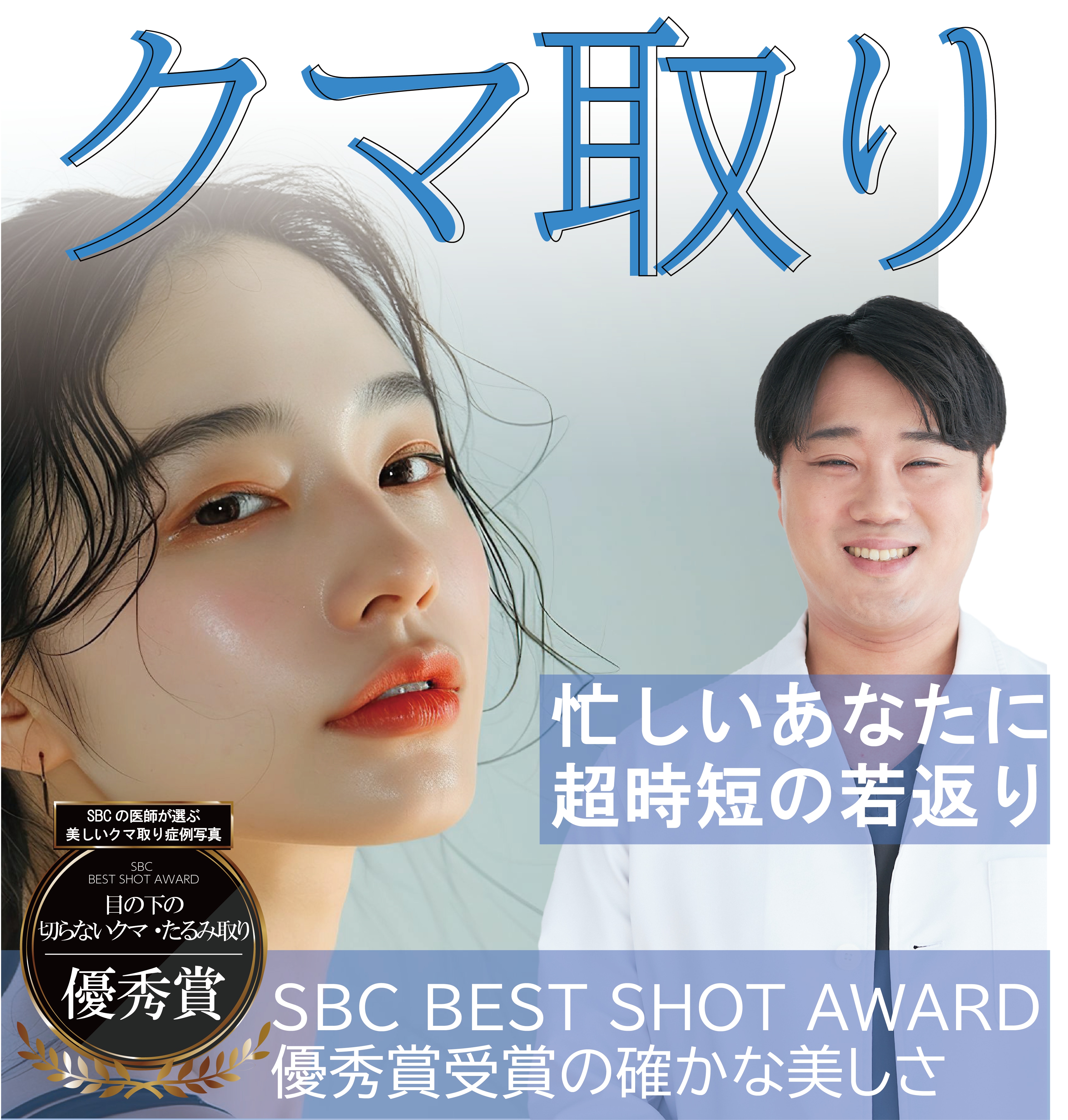 目の下の切らないクマ・たるみ(ふくらみ)取りはこの「クマ」の原因となる眼窩脂肪を除去することにより目の下のたるみやふくらみを改善させ、ハリのある「あの頃の目元」になれます。