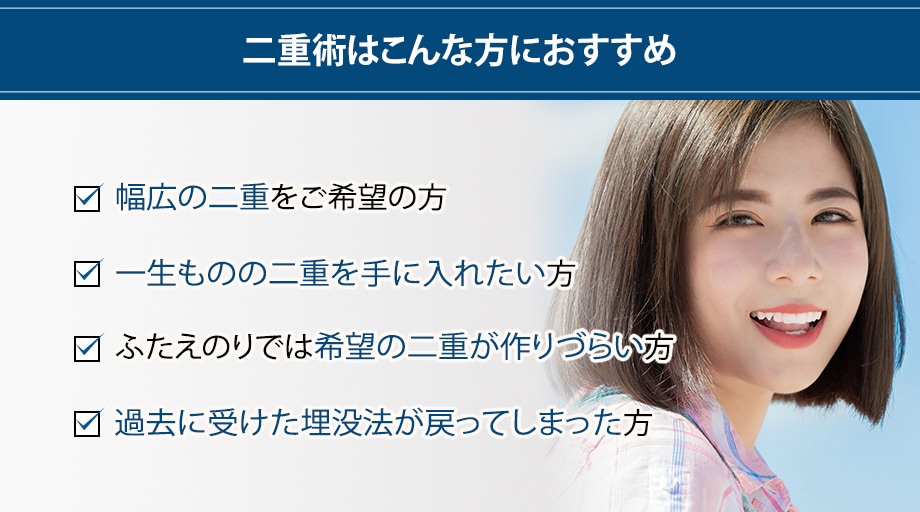 埋没法しかできない医師が案内する埋没法と、切開法までできる医師が案内する埋没法では、少し信頼度が異なります
