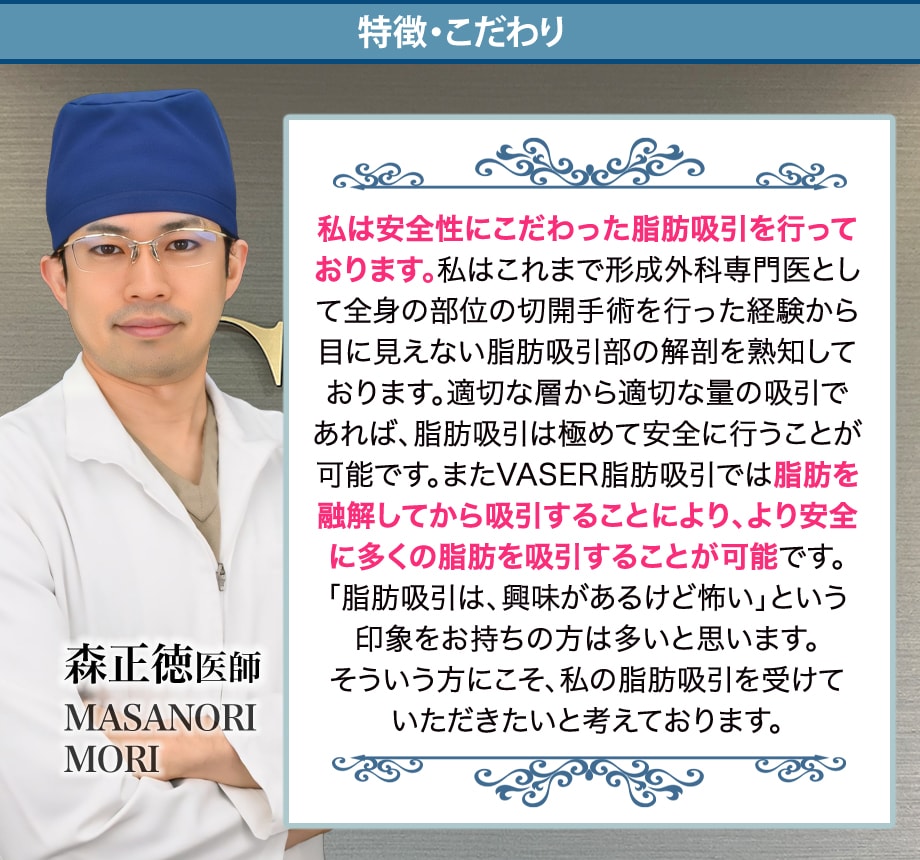森医師は形成外科専門医を取得されている”技術力”・”安全面”共に優れている医師です。