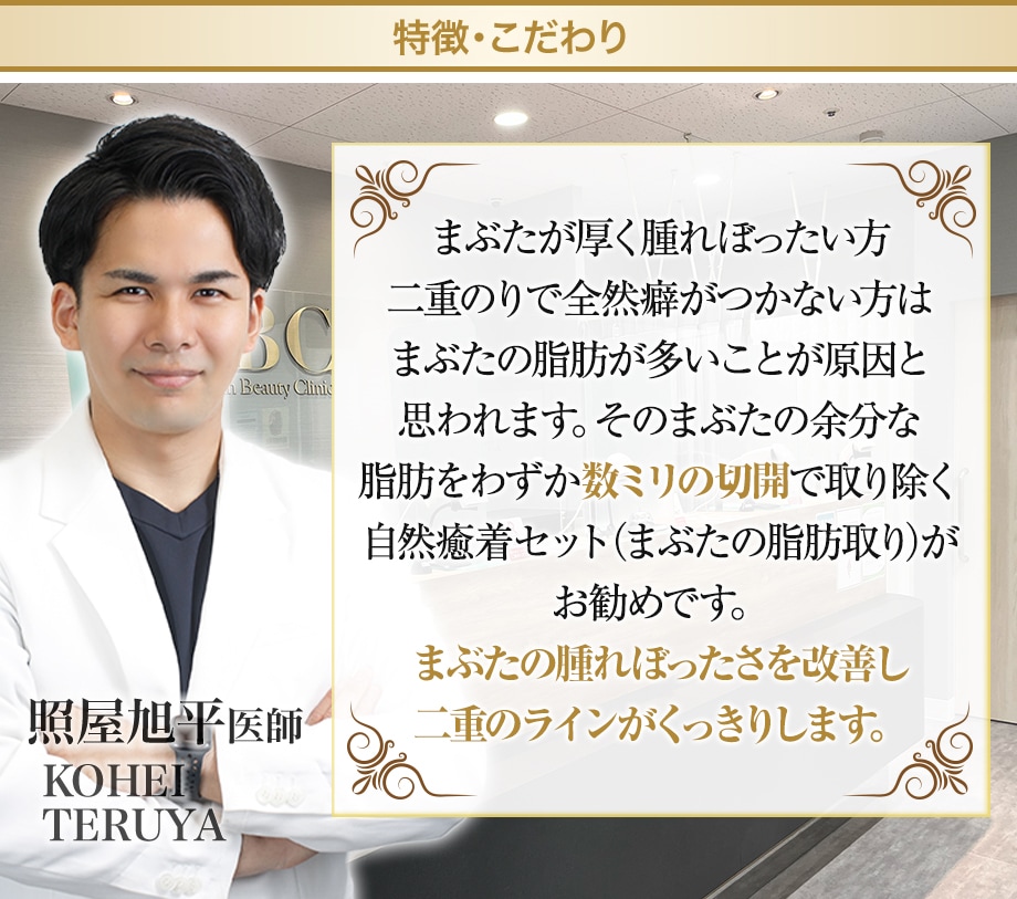 まぶたの余分な脂肪をわずか数ミリの穴から取り除く自然癒着セット(まぶたの脂肪取り)がお勧めです。