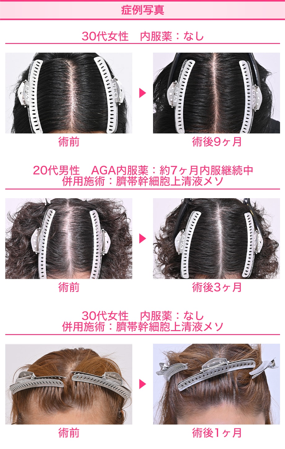 さらに毛根再生注射はAGA治療薬や自毛植毛との併用でも更なる効果が期待できます。