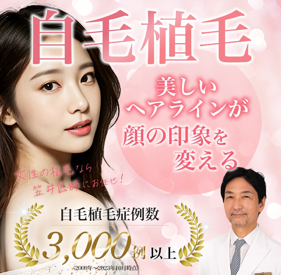 女性のヘアライン植毛なら笠井医師にお任せください。