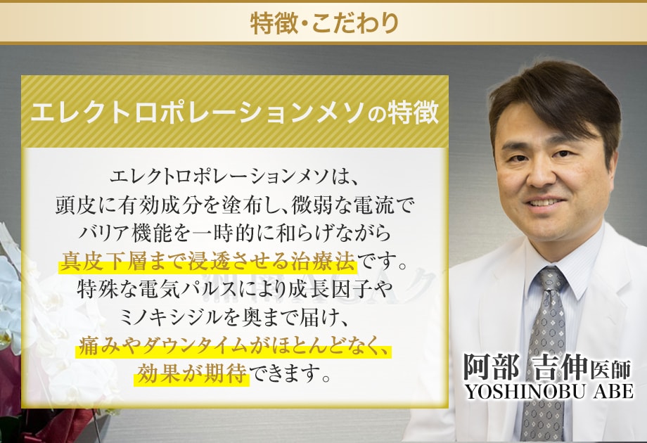 特殊な電流で成長因子×ミノキシジルを頭皮深層まで浸透。