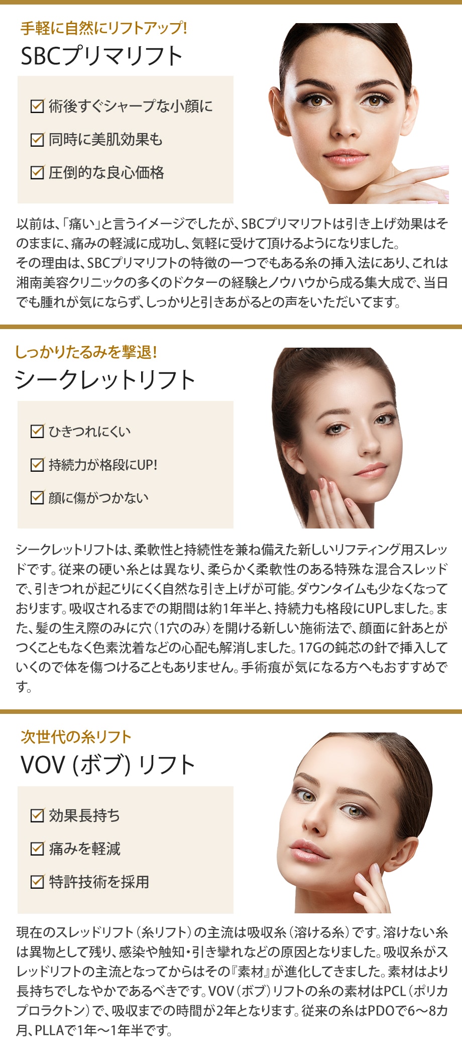 たるみやほうれい線、マリオネットラインやフェイスラインのもたつきの改善が期待できます。
