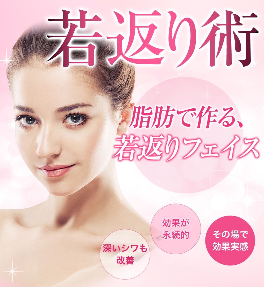 分離した脂肪を、気になるシワや溝、くぼみ部分に注入することで、肌にハリやくぼみにボリュームを持たせたり、深いしわを改善することができます。