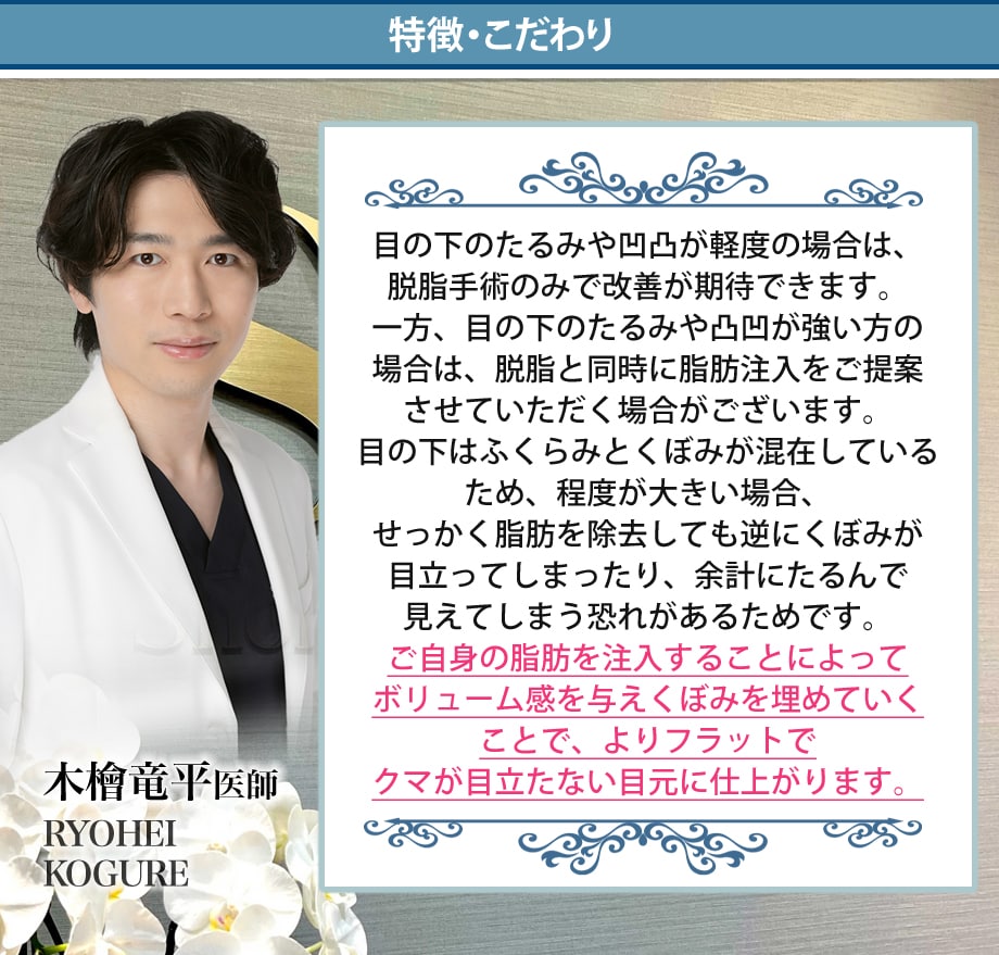 | ナチュラル脂肪注射コンデンスリッチ(目の下) | 57,750円 |
