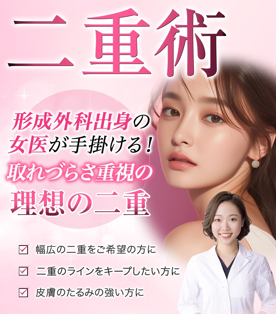 「予算は抑えたいけど安すぎるのは不安」「まぶたが厚い」「二重のりや二重テープでは二重が作りづらい」そんなあなたには線留めクロス二重術がおすすめです。