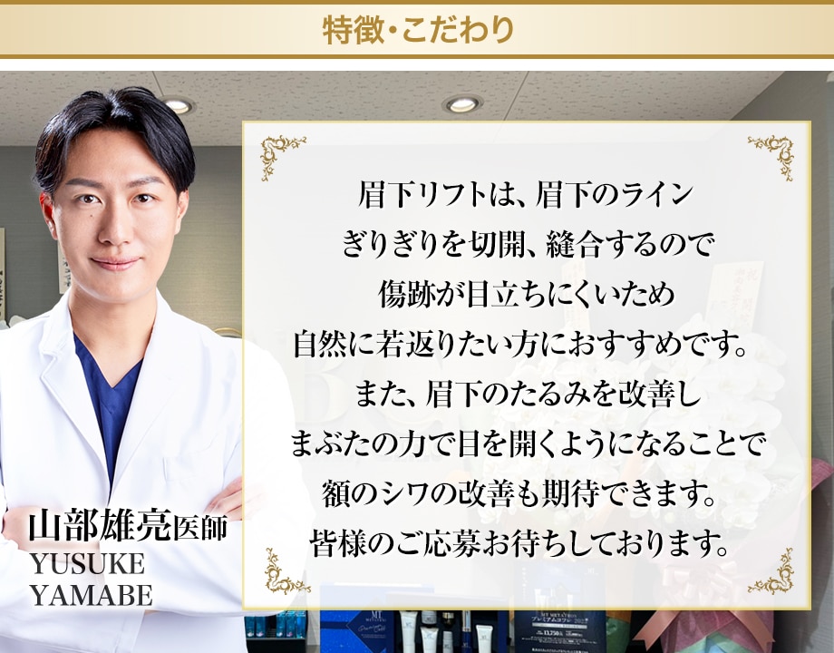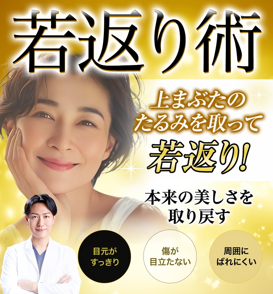 眉下リフトは、上まぶたのたるみを除去して引き上げる施術です。