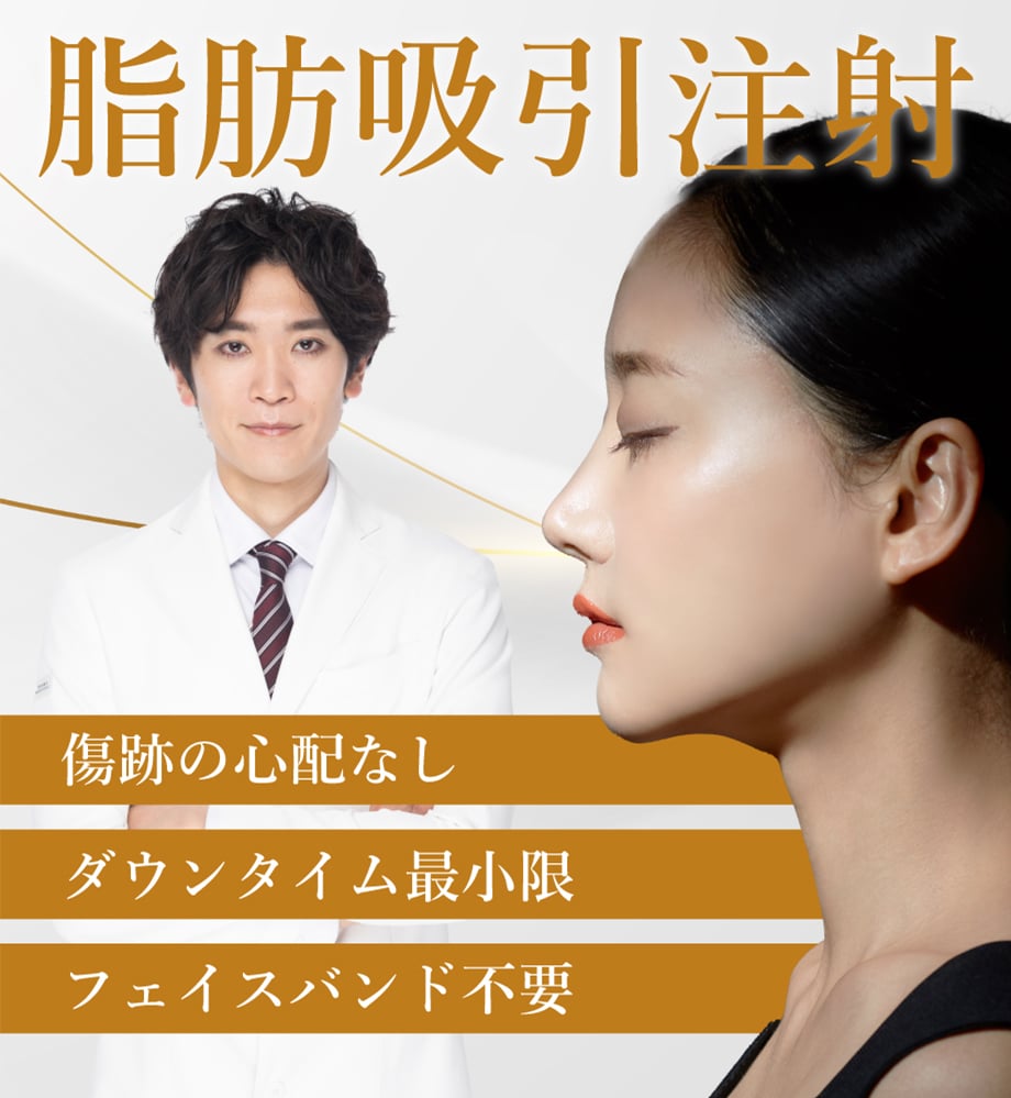 小顔用脂肪吸引注射とは、切開なしで脂肪を直接抽出できるので、脂肪溶解注射より確実に、脂肪吸引よりダウンタイムを少なく、狙った部分の脂肪を減らすことができる安全・確実・簡単な部分やせ術です。