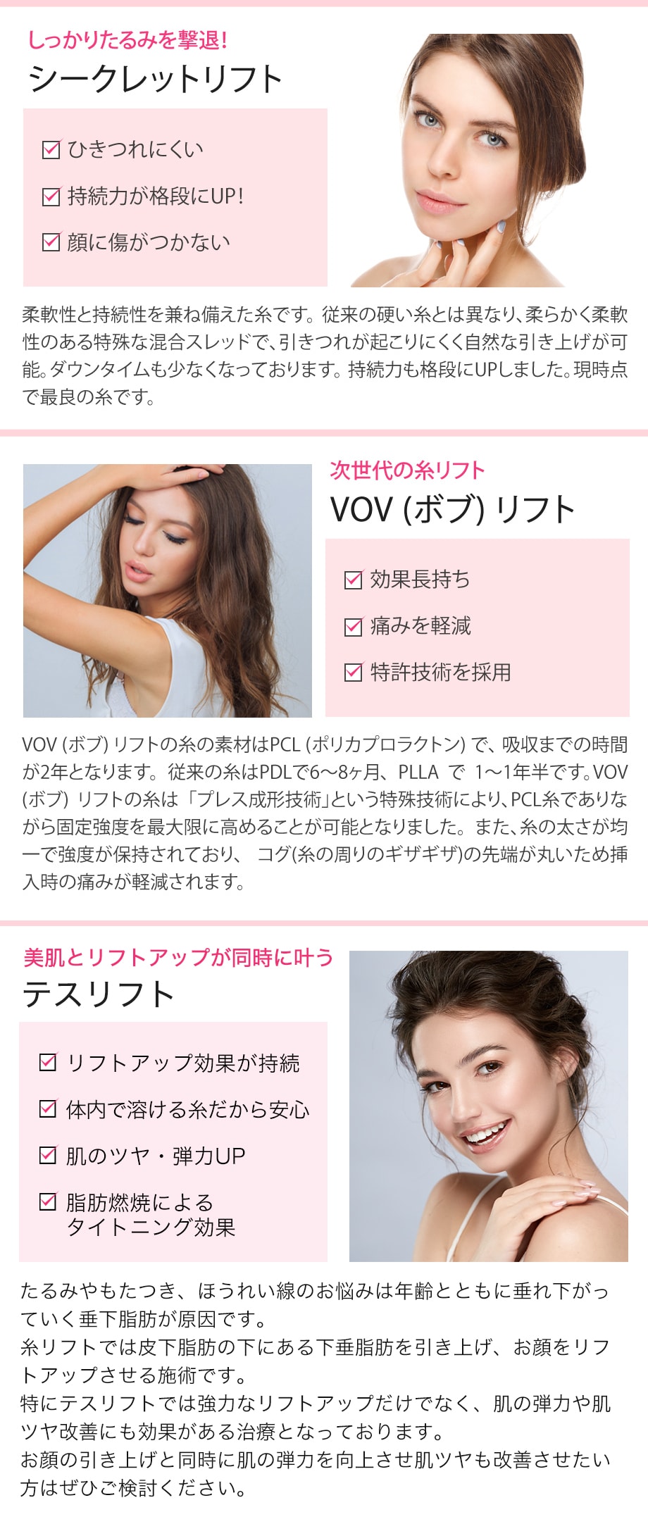 糸によるリフトアップ術は女性、男性問わず、20代~50代と幅広い年齢層のお客様に大人気!