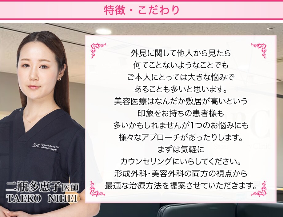解剖学を熟知した【形成外科出身】二瓶 多惠子医師があなたの骨格に合わせた二重をご提案します。