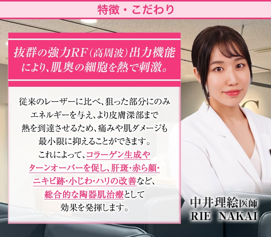 シルファームXとは、話題の最新マイクロニードルRF(高周波)を使用した、陶器肌を目指す最新肌質改善治療です。微細な針で肌に穴をあけ、肌奥の真皮層に直接熱を与えます。その熱の力により、特に毛穴・色くすみ・赤ら顔・ニキビ跡などに効果を発揮するため毛穴と同時にテクスチャー改善が可能な施術です。