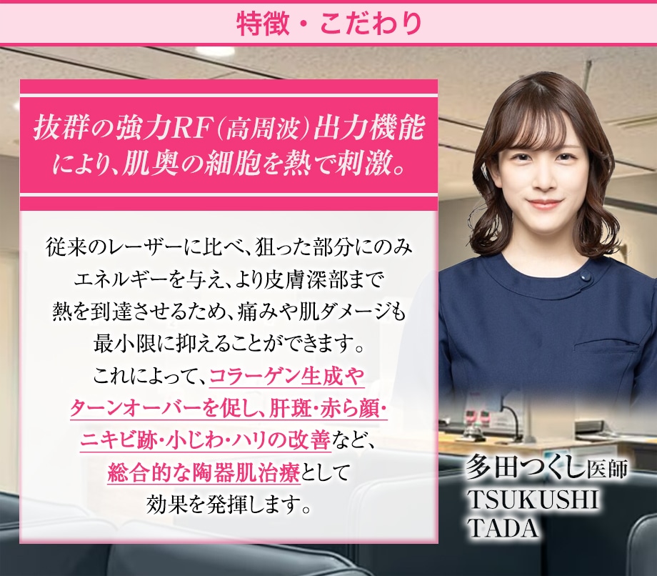 シルファームXとは、話題の最新マイクロニードルRF(高周波)を使用した、陶器肌を目指す最新肌質改善治療です。微細な針で肌に穴をあけ、肌奥の真皮層に直接熱を与えます。その熱の力により、特に毛穴・色くすみ・赤ら顔・ニキビ跡などに効果を発揮するため毛穴と同時にテクスチャー改善が可能な施術です。