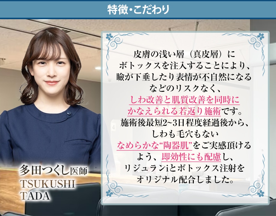 【肌質改善ボトックス】シワ改善・毛穴縮小・陶器肌♪リジュランHBとボトックス注射をオリジナル配合!