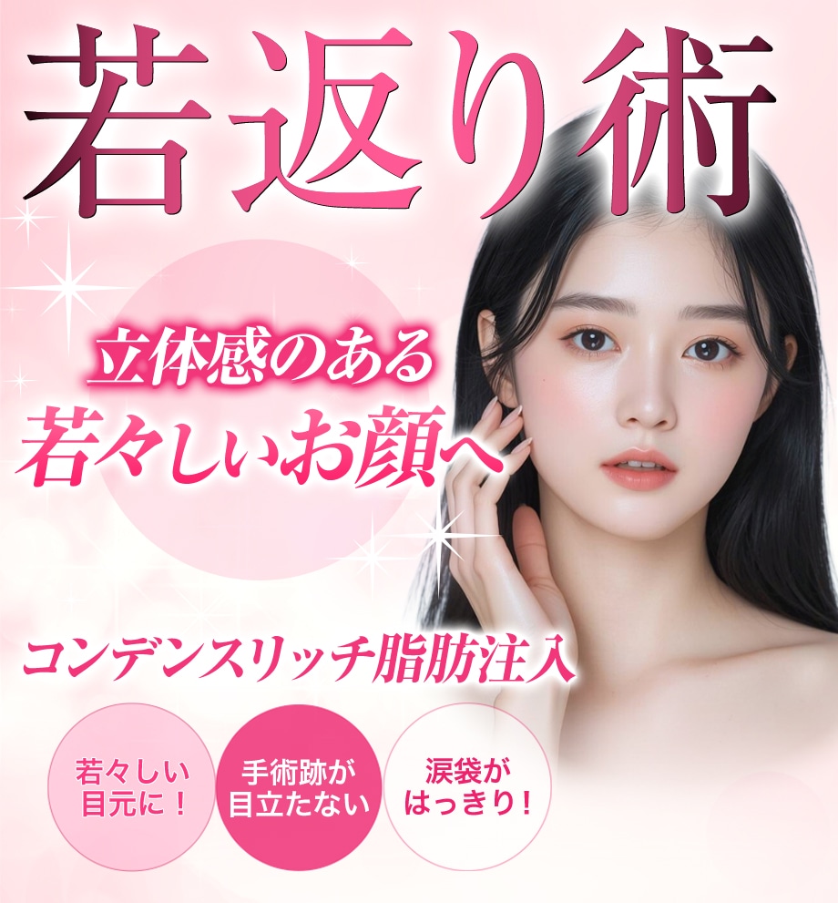 | ナチュラル脂肪注射コンデンスリッチ(目の下~ゴルゴ) | 86,620円 |