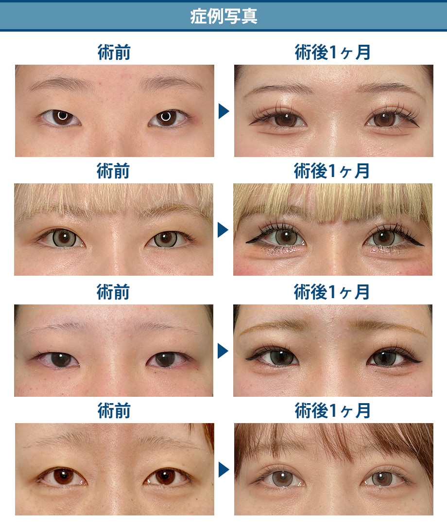 瞼の表面に針を通すことがないので、表面に傷が出来ず、術直後からメイクが可能な、高品質な二重術です。