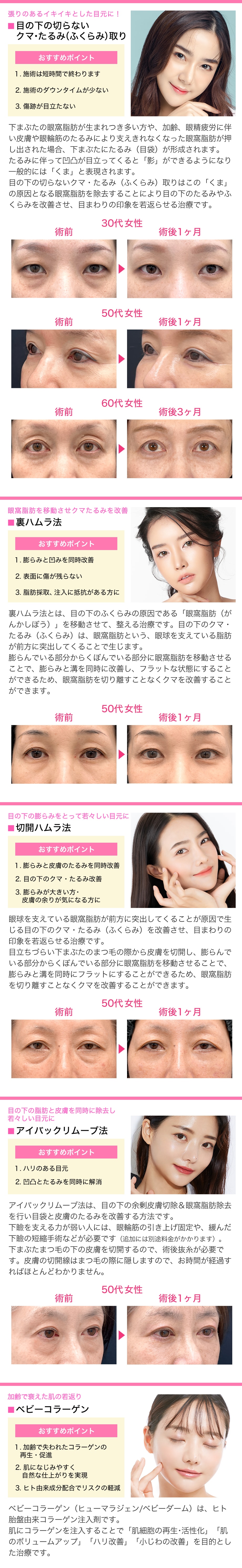 | 目の下の切らないクマ・たるみ(ふくらみ)取り(麻酔(局所麻酔)代が含まれています。※別途安心麻酔(静脈麻酔)代がかかります。 ) | 79,100円 |