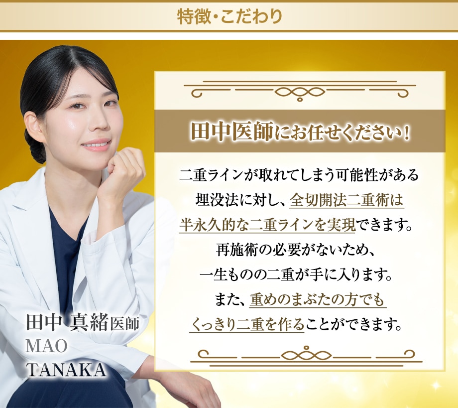 また一生保証がついているため、まぶたが重たい方、一生ものの二重が欲しい方におすすめの施術です。