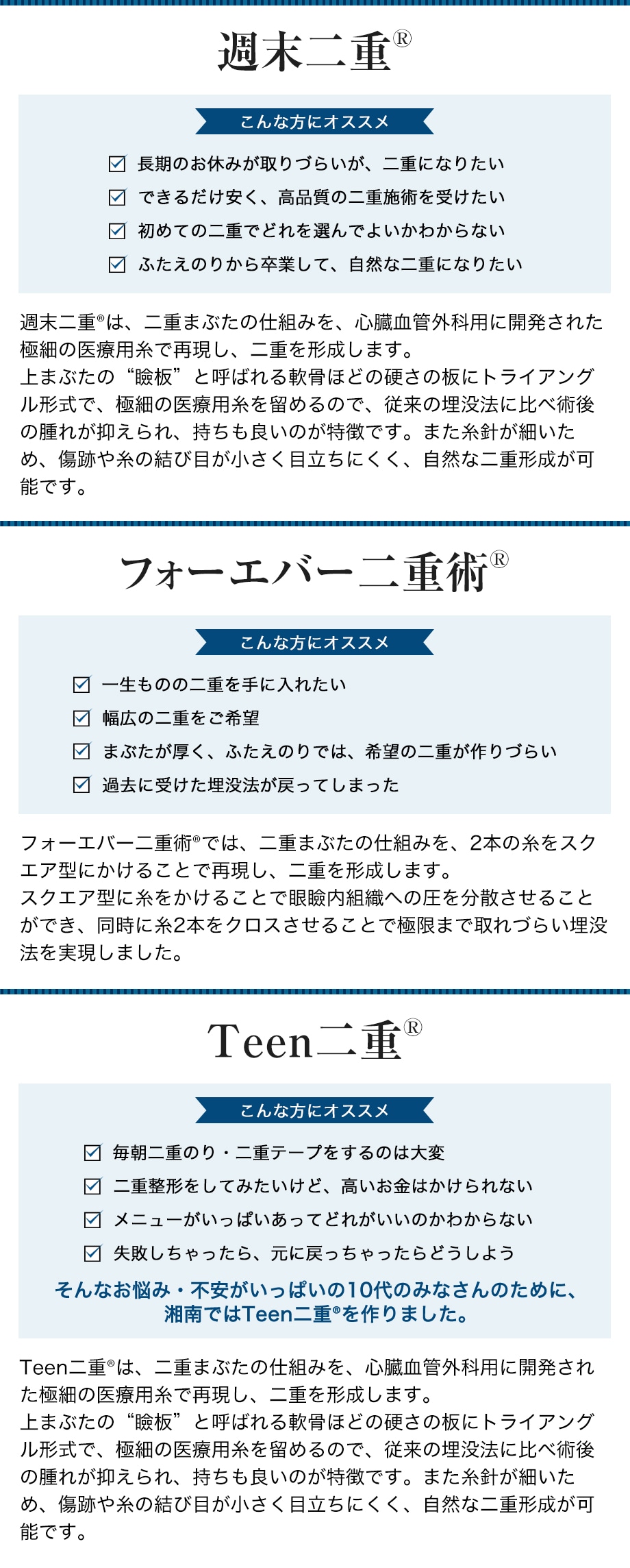 『自然な二重を作りたい。』『初めての手術だけどバレたくない。』『メイクをおとした時のギャップが嫌。』