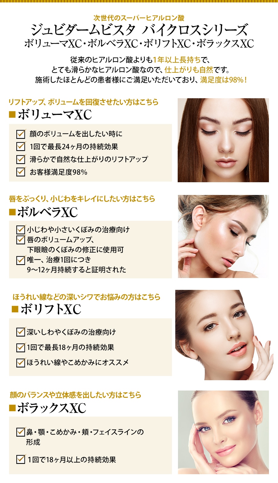 部位によって硬さや持続力の異なる薬剤を使い分けます。詳しく知りたい方は、ぜひカウンセリングへお越しください!