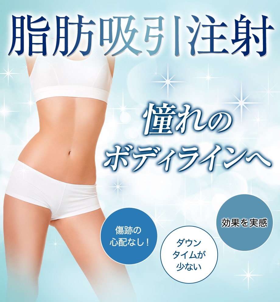 落としづらい脂肪を何とかしたい、きれいなボディラインが欲しい…でもダウンタイムはそこまで取れない…そんな希望を叶えるのが脂肪吸引注射です。