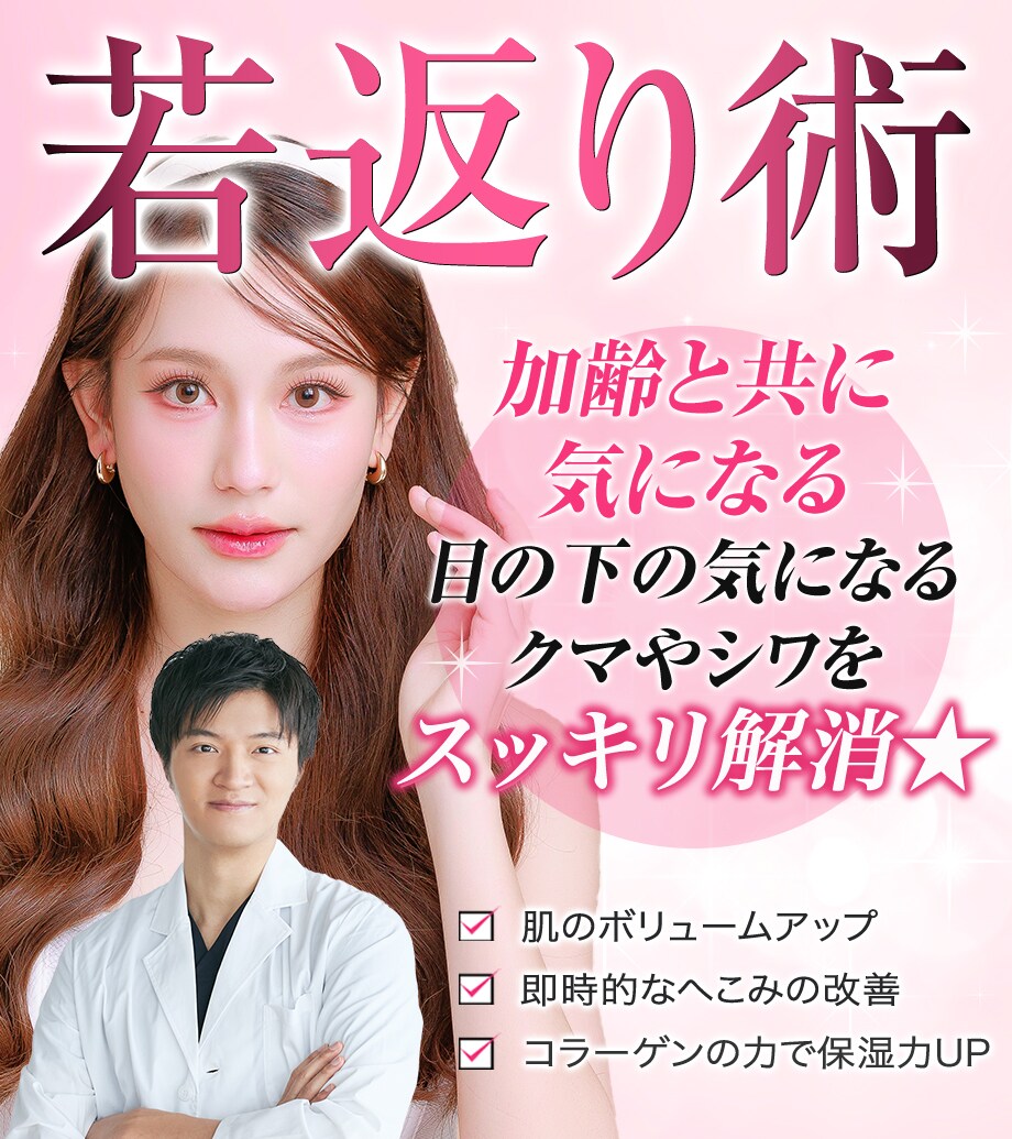 肌のハリや弾力を保つうえで重要な「1型」と「3型」のコラーゲンを、1:1の理想的なバランスで配合した注入剤です。ヒト胎盤由来の成分で、特に3型コラーゲンは若々しい肌に多く含まれていますが、加齢とともに減少してしまいます。このコラーゲンが減ることで、シワ・たるみ・くすみといった老化サインが現れやすくなります。ベビーコラーゲンは、目の下のクマや口元の細かいシワなど、皮膚が薄く繊細な部位に特に効果的。自然なふくらみが戻り、顔全体がやさしく若返った印象に仕上がります。効果の持続は3?6ヶ月程度で、継続的に受けることでより美しい状態を保ちやすくなります。初めての方にもおすすめです。