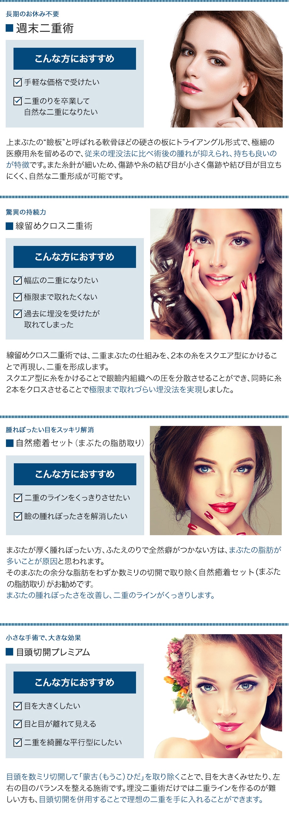 | 線留めクロス二重術(両目(笑気麻酔込)) | 98,000円 |