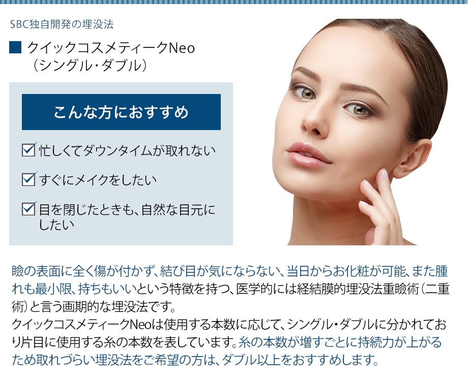 週末二重術は、二重まぶたの仕組みを、心臓血管外科用に開発された極細の医療用糸で再現し、二重を形成します。