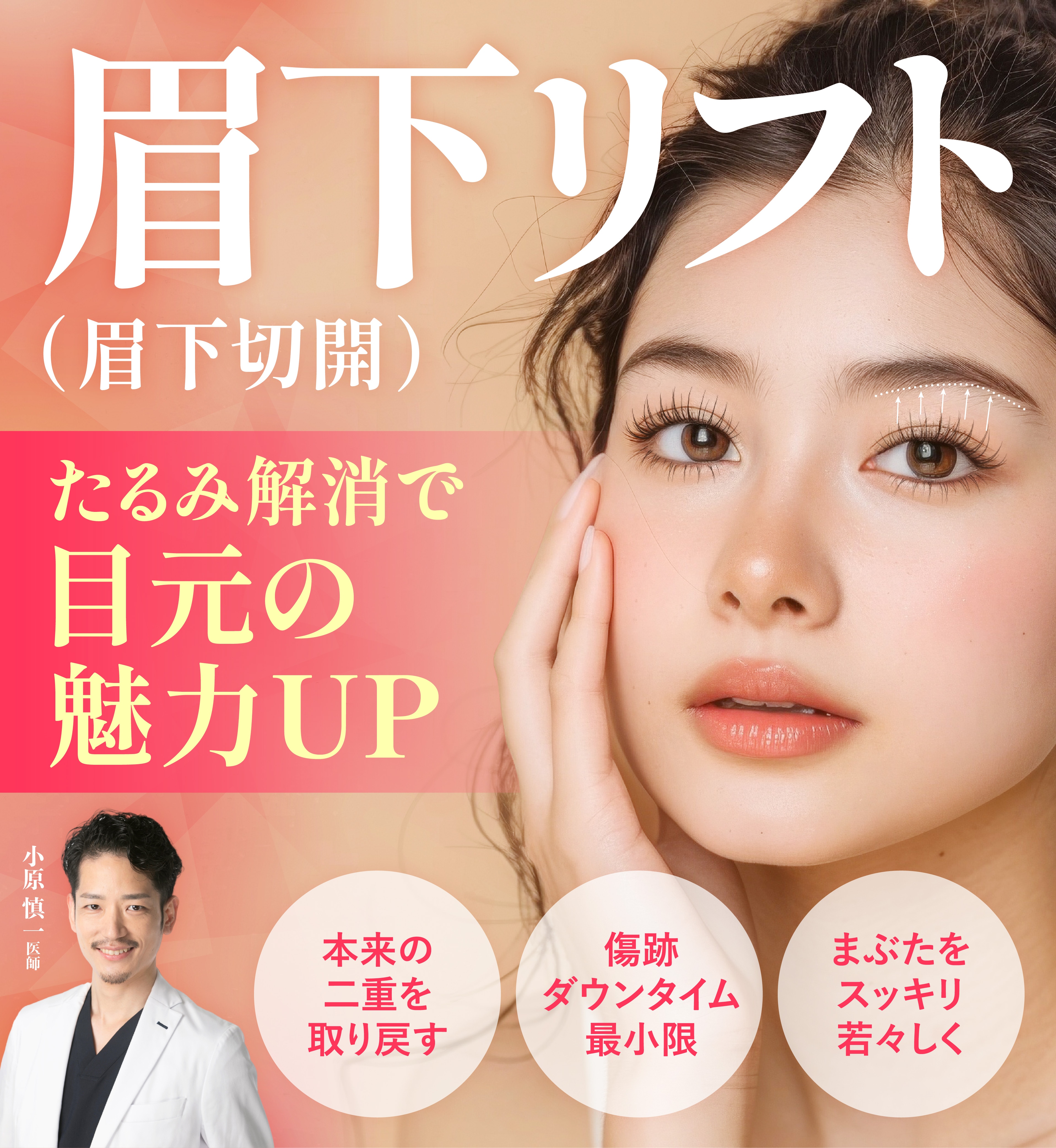 眉下リフト(眉下切開)は、眉下のギリギリのラインを切開するので傷が目立ちません。