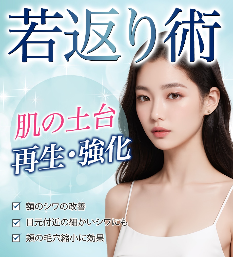 ジャルプロスーパーハイドロとは、非架橋ヒアルロン酸、7種類のアミノ酸、3種のペプチドという3つの主成分が、皮膚や脂肪を支える土台となるリガメント(靭帯)を強化し、肌質改善やハリ・弾力、リフトアップ、タイトニング等の効果をもたらします。