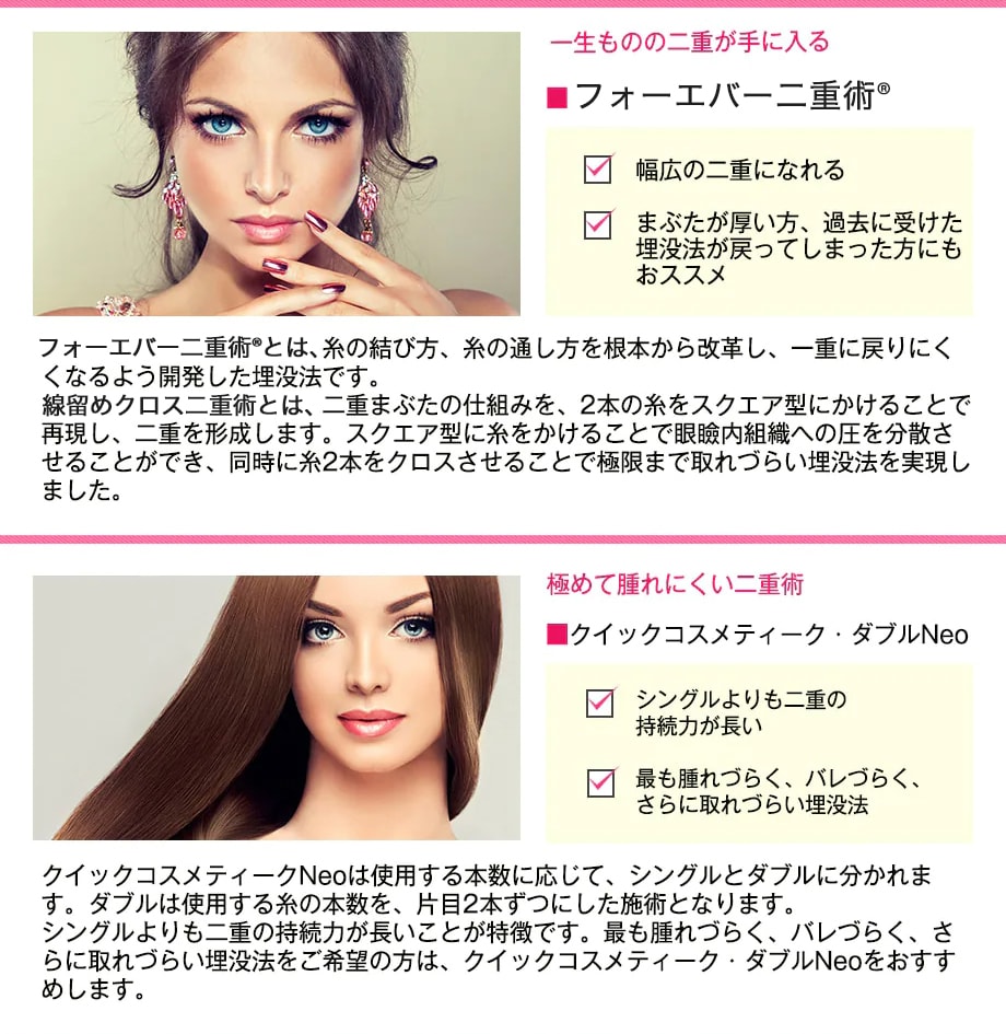 さらに、近年では二重手術の技術進歩により、心臓外科手術に使われる極細の糸を使用した二重手術も提供しております。