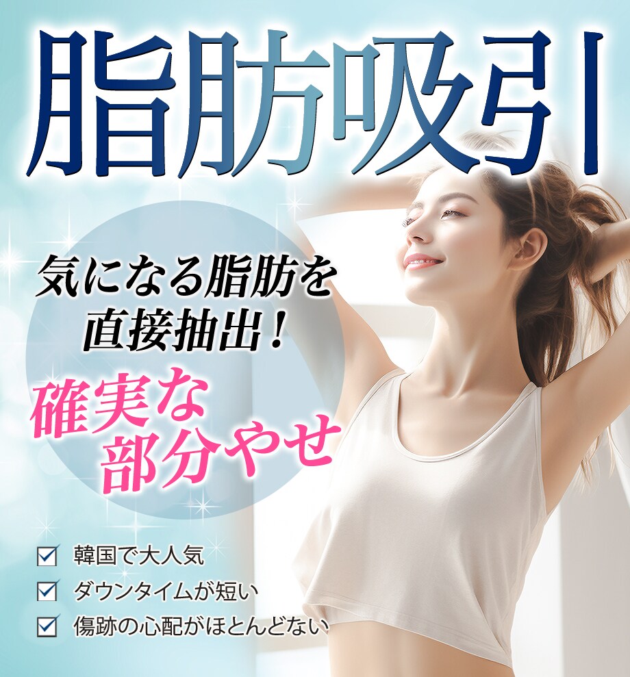 脂肪吸引より細い注射器を使用して、皮下脂肪を吸い出すため、ダウンタイムは短く、あざ・腫れを軽減できます。