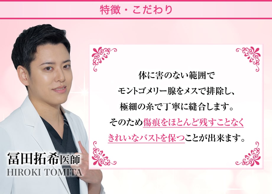 冨田医師によるモントゴメリー腺切除のモニター様を