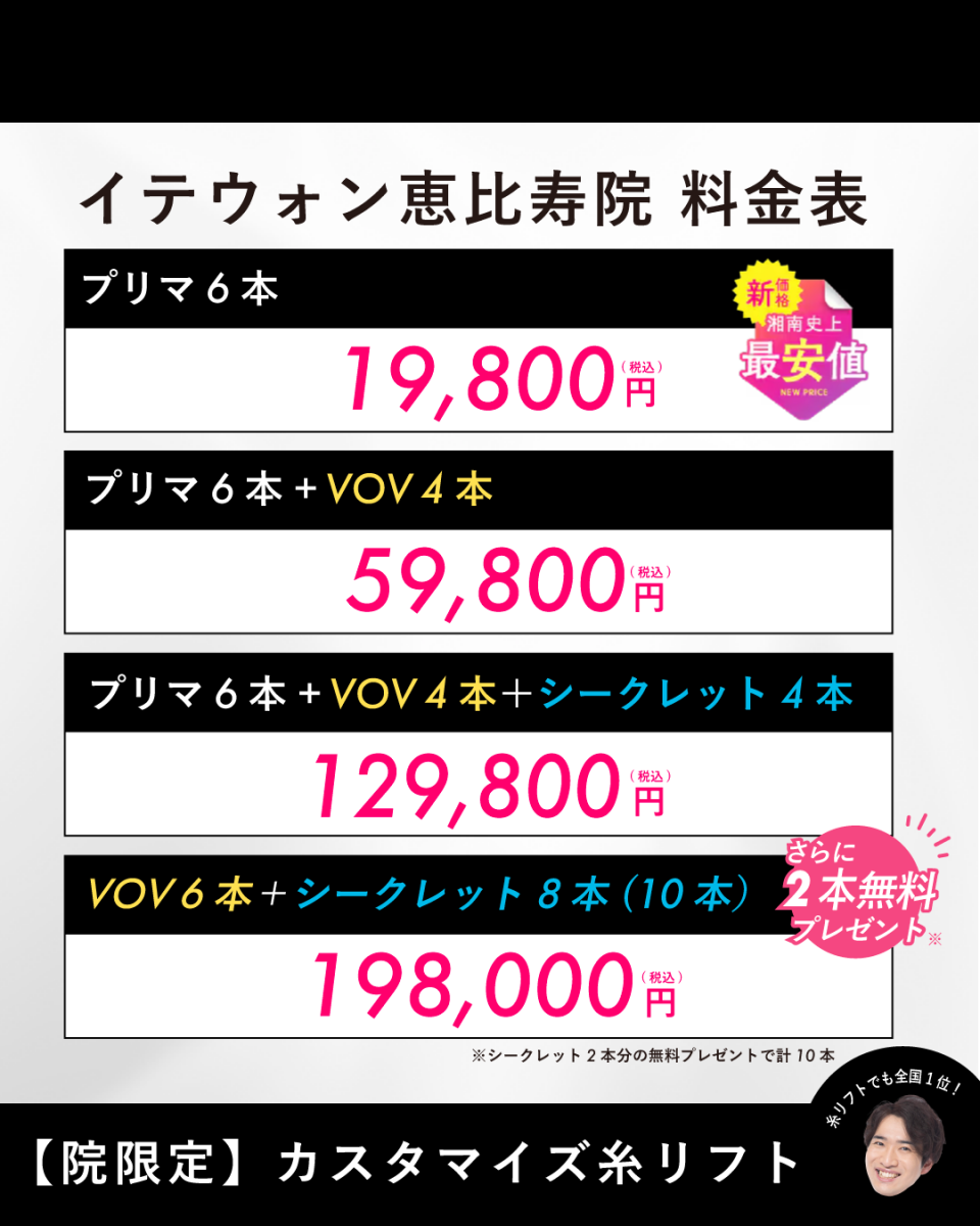 シークレットリフト(10本(イテウォンビューティークリニック限定)) | 159,870円 |