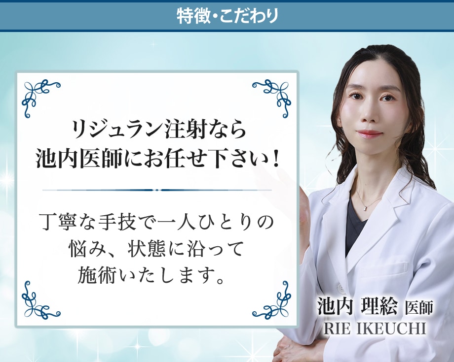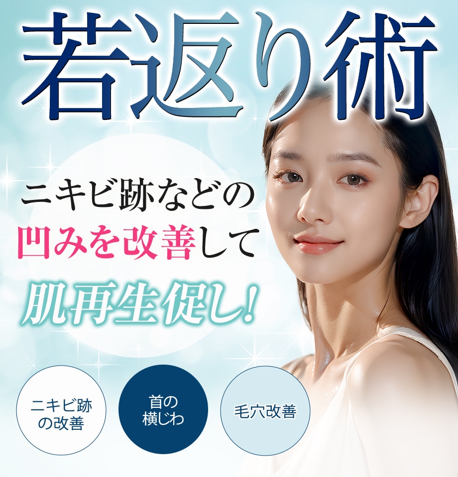 リジュランSは、肌の自己修復を促すポリヌクレオチド(PN)を高濃度で配合した、シワの改善や窪んだ傷跡にアプローチ。特に首元のしわ改善、クレーター、ニキビ跡の改善の効果が期待できます。