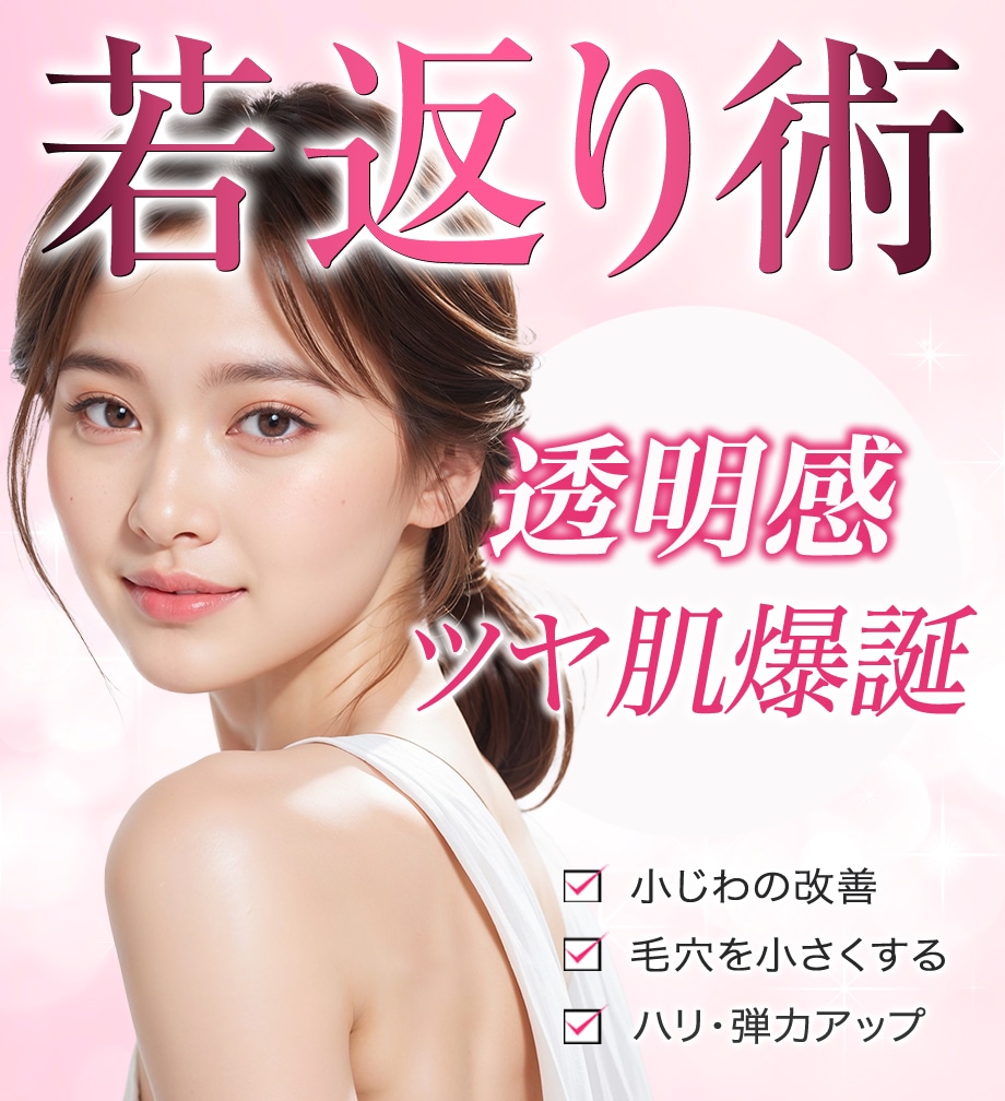 乾燥やくすみハリ不足など年齢や環境で変化するお肌に潤いとツヤを与える治療です。