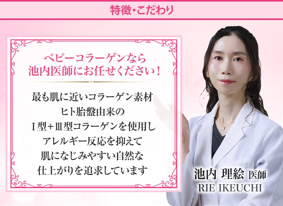 ベビーコラーゲン(ヒューマラジェン)とは、赤ちゃんの皮膚に多く含まれる Ⅲ型コラーゲン と、一般に肌の主要構成コラーゲンである Ⅰ型コラーゲン を半々で配合した、ヒト胎盤由来の注入製剤です。