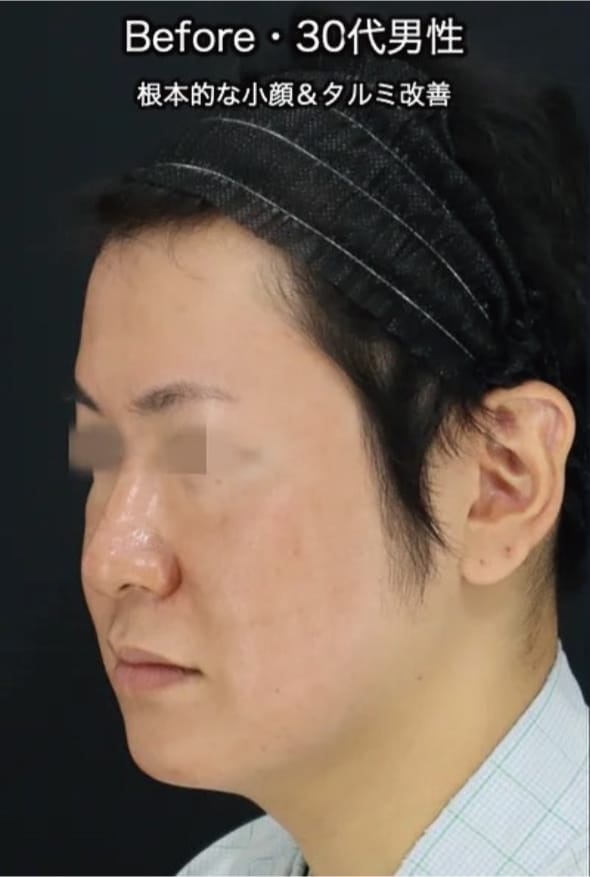 30代男性 エグゼクティブスマスフェイスリフト (スマス切除+リガメント切除・神経刺激装置使用)+コメカミリフト・ネックリフト+ベイザー脂肪吸引(ジョールファット+頬+顎下)+バッカルファット除去+創傷治癒PRP+MD式+全身麻酔(麻酔専門医) 術後6ヶ月 編集 優先