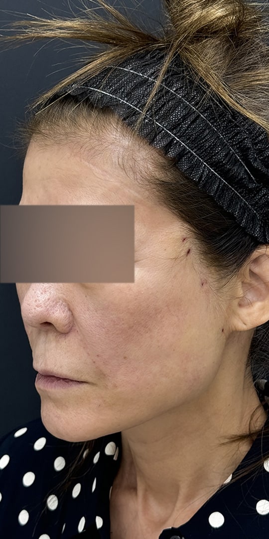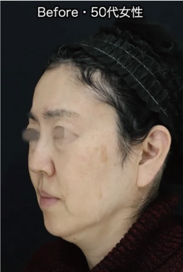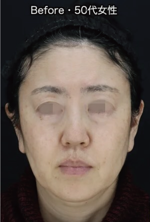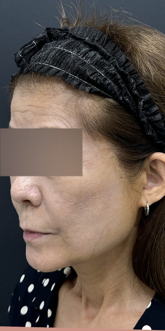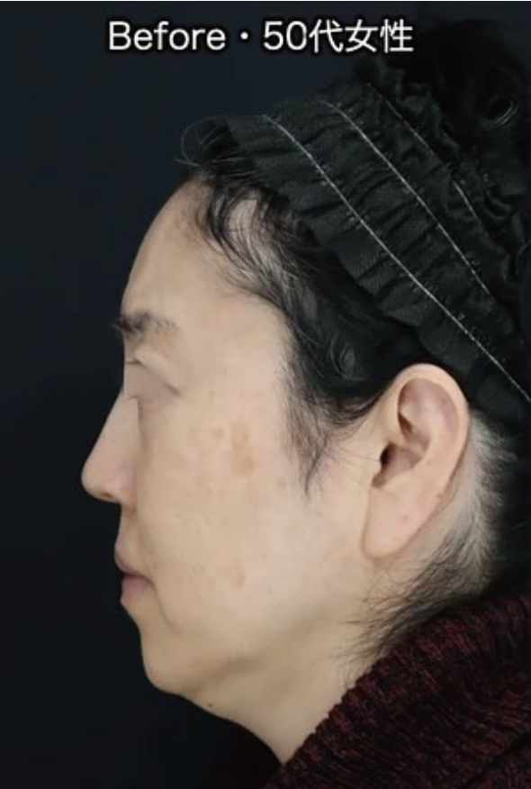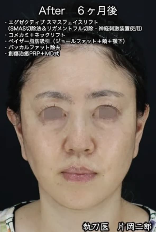 50代女性 エグゼクティブスマスフェイスリフト(スマス切除+リガメント切除・神経刺激装置使用)+コメカミ&ネックリフト+ベイザー脂肪吸引(ジョールファット・頬・顎下)+バッカルファット+創傷治癒PRP+MD式+全身麻酔(麻酔科専門医) 術後6ヶ月