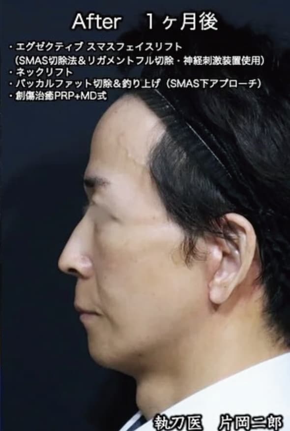 50代女性 エグゼクティブスマスフェイスリフト(スマス切除+リガメント切除・神経刺激装置使用)+ネックリフト+バッカルファット+創傷治癒PRP+MD式+全身麻酔(麻酔科専門医) 術後1ヶ月