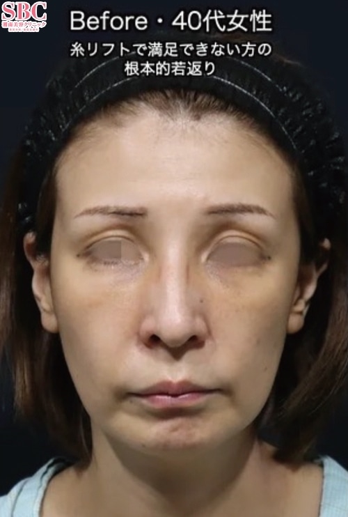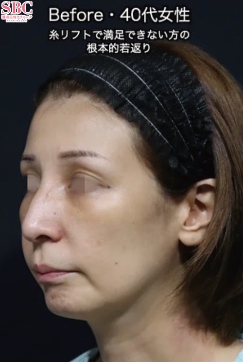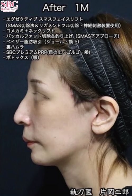 40代女性 エグゼクティブスマスフェイスリフト (スマス切除+リガメント切除・神経刺激装置使用)+コメカミリフト+ネックリフト+ベイザー脂肪吸引(ジョールファット・顎下)+創傷治癒PRP+MD式+全身麻酔(麻酔科専門医) 術後3ヶ月
