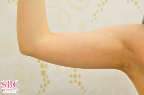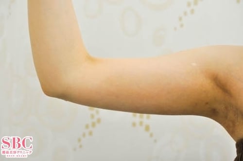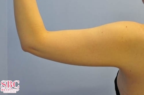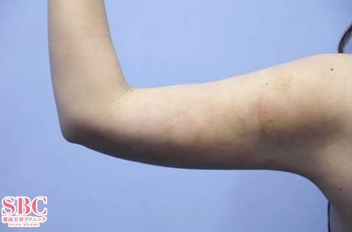 おなかの脂肪吸引にご満足されて今度は二の腕の脂肪吸引を受ける!術後1ヶ月目