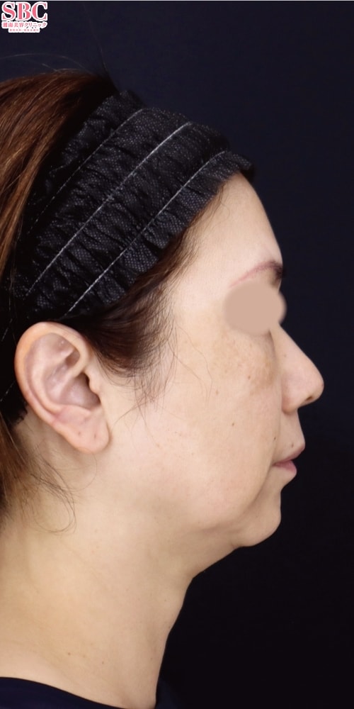 50代女性 エグゼクティブスマスフェイスリフト(スマス切除+リガメント切除・神経刺激装置使用)+コメカミ&ネックリフト+ベイザー脂肪吸引(ジョールファット・頬・顎下)+バッカルファット+創傷治癒PRP+MD式+全身麻酔(麻酔科専門医) 術後6ヶ月