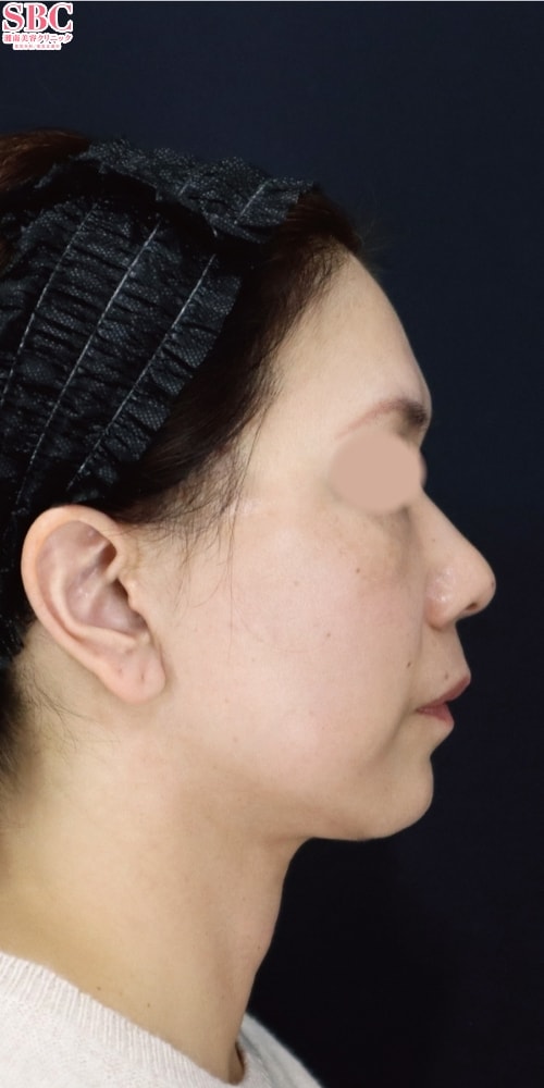 40代女性 エグゼクティブスマスフェイスリフト(SMAS切除+リガメント切除・神経刺激装置使用)+こめかみ&ネックリフト+ベイザー脂肪吸引(ジョールファット・頬・顎下)+バッカルファット切除&つり上げ固定+創傷治癒PRP+MD式+全身麻酔(麻酔専門医管理) 術後1ヶ月