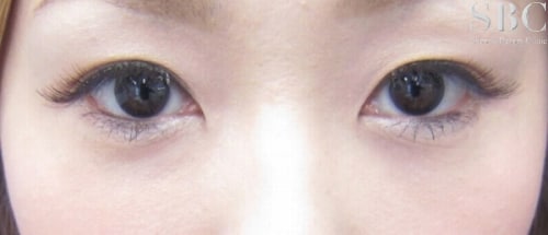 柏院院長・佐藤プロデュース。眉下のたるんだ皮膚を切除して重い瞼をすっきりさせる!直前・術後1か月目。