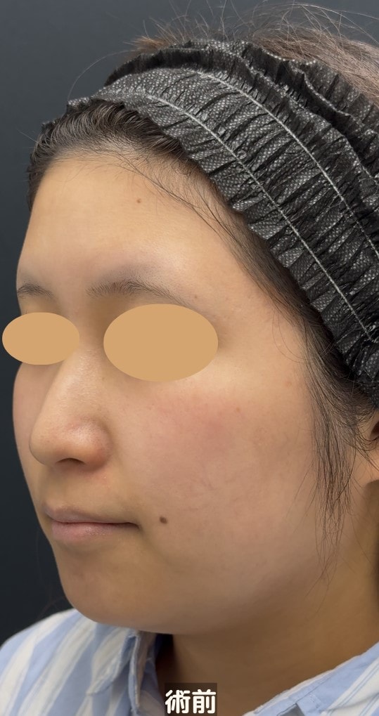 ダウンタイムをなるべく少なく、頬のふっくらした感じを減らしたい、脂肪吸引ほどはダウンタイムが取れないけれど、脂肪溶解注射より効果が早く現れる施術がよいとご希望され、小顔用脂肪吸引注射を選択されました。 ダウンタイムを最小限に、頬の印象が変わりました。 -
