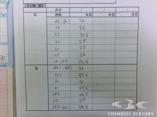『驚きの-4cmダウン(二の腕中央部の採寸)』(根こそぎボディージェット)